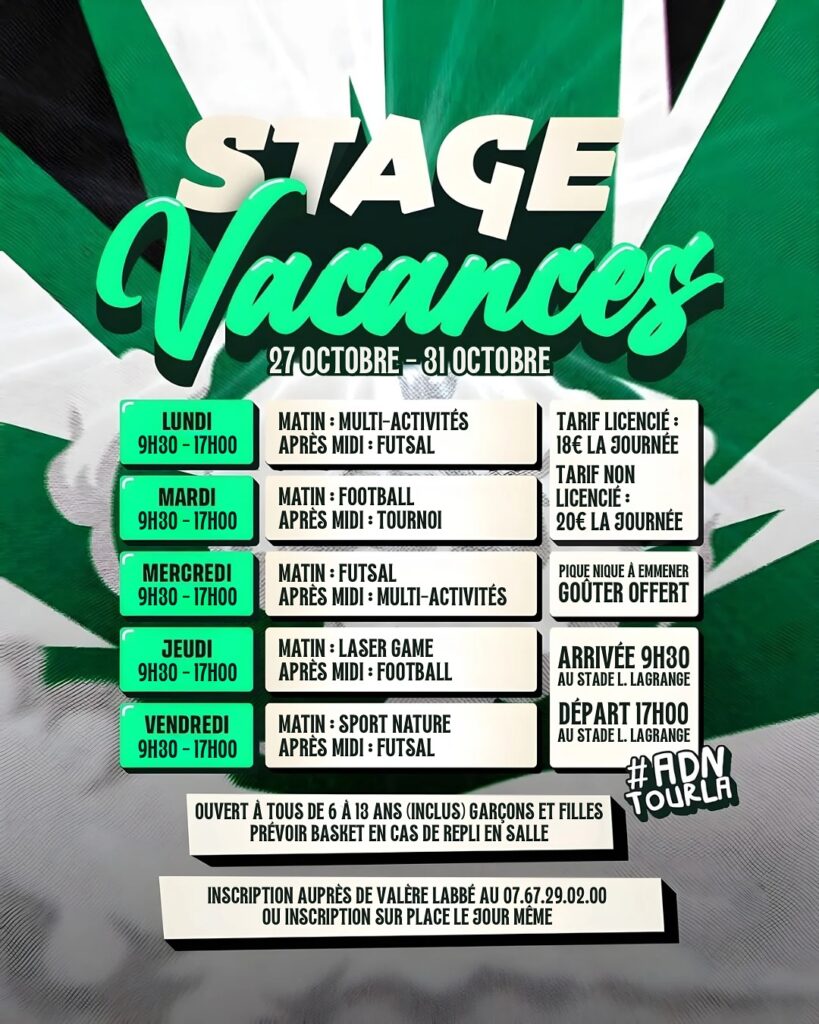 Comme chaque année, l’𝐀𝐒 𝐓𝐨𝐮𝐫𝐥𝐚𝐯𝐢𝐥𝐥𝐞 propose son traditionnel stage vacances durant les vacances d’automne en offrant la possibilité aux enfants de continuer la pratique sportive pendant les vacances avec du football mais pas que !